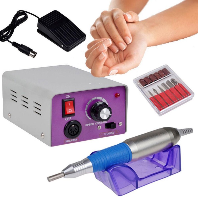 Профессиональная машинка с набором насадок для аппаратного маникюра, педикюра и коррекции искусственных ногтей, скорость вращения до 20000 об./мин. Плавная регулировка оборотов от низких (5000 об.) до высоких (20 000 об/мин.). Работает от сети, предельно проста в использовании, оснащена микропроцессорным регулятором скорости и реверсом. Удобное гнездо для рукоятки позволит уберечь ее от повреждений. Прекрасный вариант для начинающих мастеров! Маленький вес ручки. Удобный регулятор оборотов. Отсутствие вибраций. Встроенный предохранитель защищает от перегрузок.