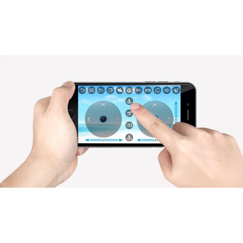 При управлении можно использовать мобильный телефон (планшет), для контроля полёта или эргономичный пульт дистанционного управления с держателем телефона. Мини беспилотник может быть запущен вручную благодаря функции режима G-датчика (акселерометр), взлёт / посадка одним нажатием, следование в автоматическом режиме по заданным точкам.