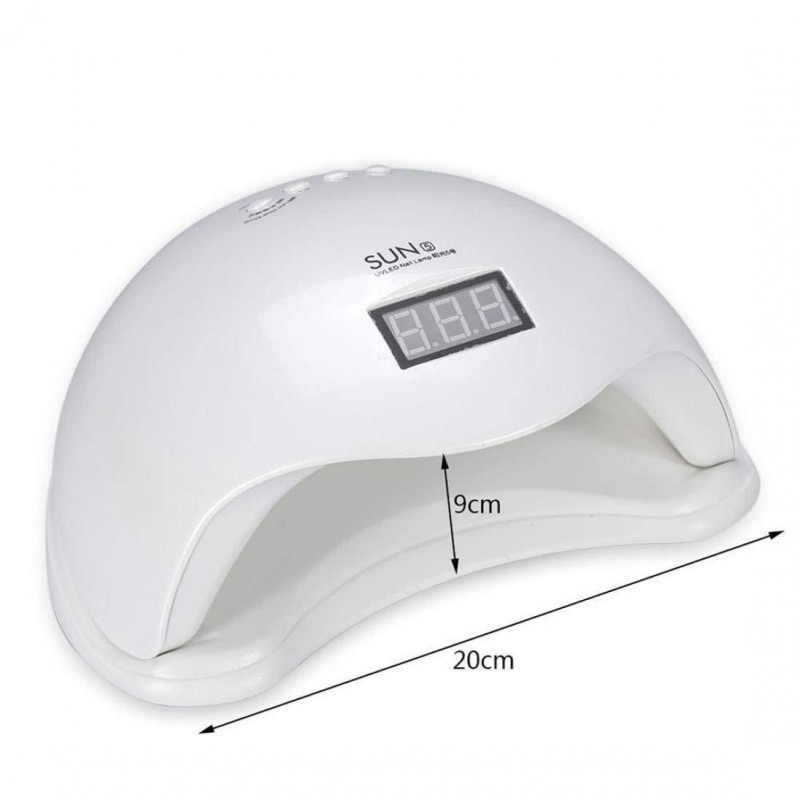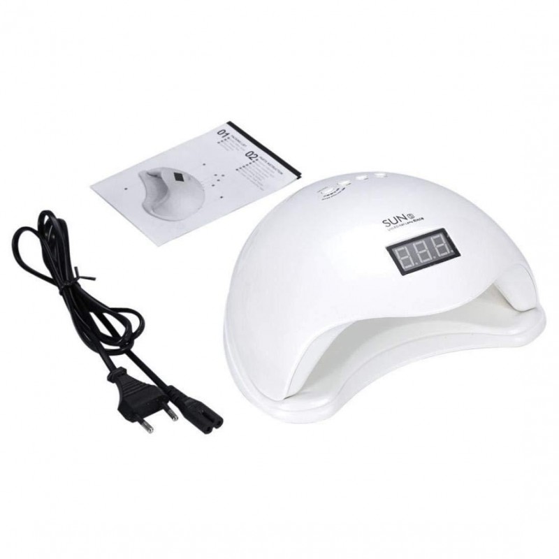 Лампа гибридная белая SUN 5, 24W/48W UV/LED с таймером на 15, 30 и 60 секунд. Гибридная лампа позволяет сушить любые виды гелей, гель лаков. Лампа с датчиком движения, что позволяет эконимить всремя и расход электроэнергии. Съемное дно на магнитах, что удобно для педикюра.