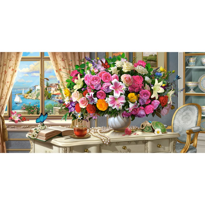Пазлы Castorland 4000 элементов "Летние цветы и чашка чая". Развивает моторику рук, логическое мышление, усидчивость.