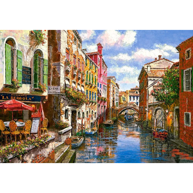 Пазл "Кафе", упаковка - картонная коробка. В комплекте 1500 элементов. Размер готовой картинки 68*47 см. Материал - картон. Пазлы любят собирать не только детишки, но и взрослые тоже. Касторлэнд отличается разнообразием ассортимента и яркостью красок. Собирать пазлы увлекательно и полезно к тому же собирание пазлов способствует развитию образного и логического мышления, произвольного внимания, восприятия, различению отдельных элементов по цвету, форме, размеру и так далее учит правильно воспринимать связь между частью и целым развивает мелкую моторику.