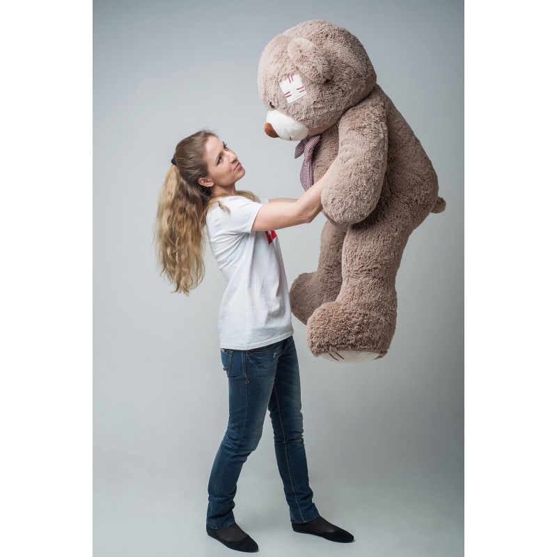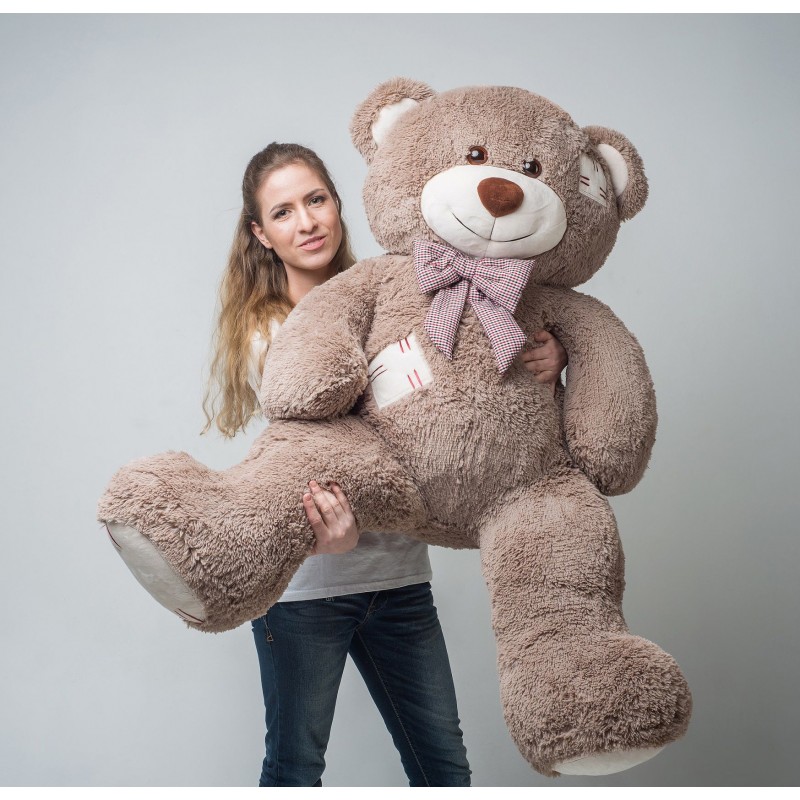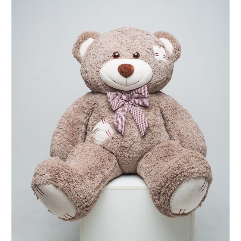 Наши плюшевые мишки имеют правильные пропорции тела и не увеличены за счет искусственно удлиненных ног или других частей тела. Мы не отходим от европейских стандартов измерения больших игрушек, поэтому в расчет роста включен коэффициент объема. Длиной мишки считается сумма двух отрезков в положении сидя: от головы до хвоста (это первый) и от хвоста до окончания лап (это второй).