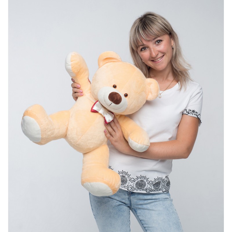 Наши плюшевые мишки имеют правильные пропорции тела и не увеличены за счет искусственно удлиненных ног или других частей тела. Мы не отходим от европейских стандартов измерения больших игрушек, поэтому в расчет роста включен коэффициент объема. Длиной мишки считается сумма двух отрезков в положении сидя: от головы до хвоста (это первый) и от хвоста до окончания лап (это второй).