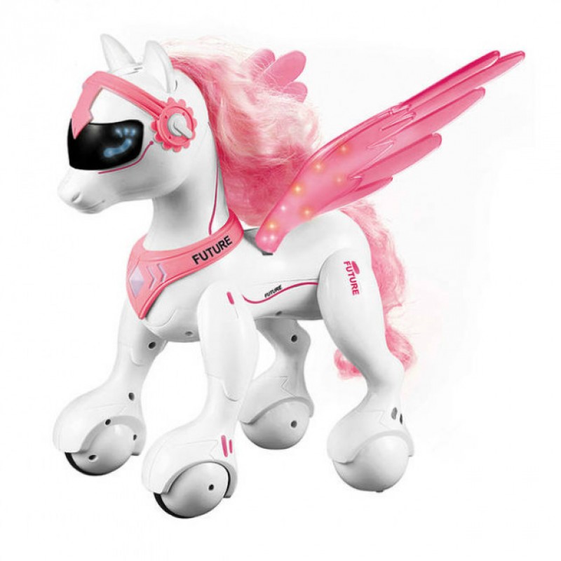 Робот единорог- А009 (пони) р/у выглядит очень необычно, но в то же самое время симпатично. Эта забавная пони единорог выполнена в бело*розовом цвете с гривой и крыльями. У неё добрая мордочка и невероятные глазки, которые загораются, когда она просыпается!