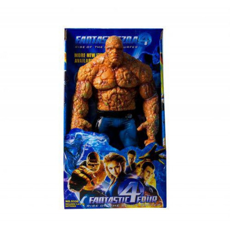 Супергерой из фильма "Фантастическая четверка" Существо. Коллекционная фигурка из мягкой резины. Говорит фразы (на английском языке), звауки боя. Упаковка: Коробка Цвет: Оранжево-синий Тип эл-тов питания: Батарейки Эл-ты питания в комплекте: Есть Вес в упаковке: 640 г Вес без упаковки: 460 г Габариты в упаковке: 22 x 10 x 37 см Габариты без упаковки: 16 x 8 x 35 см